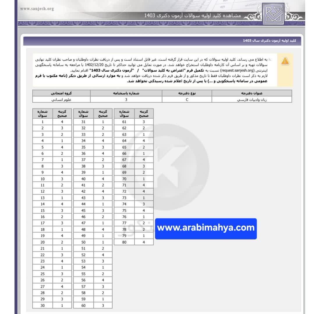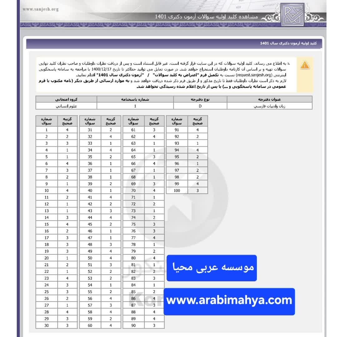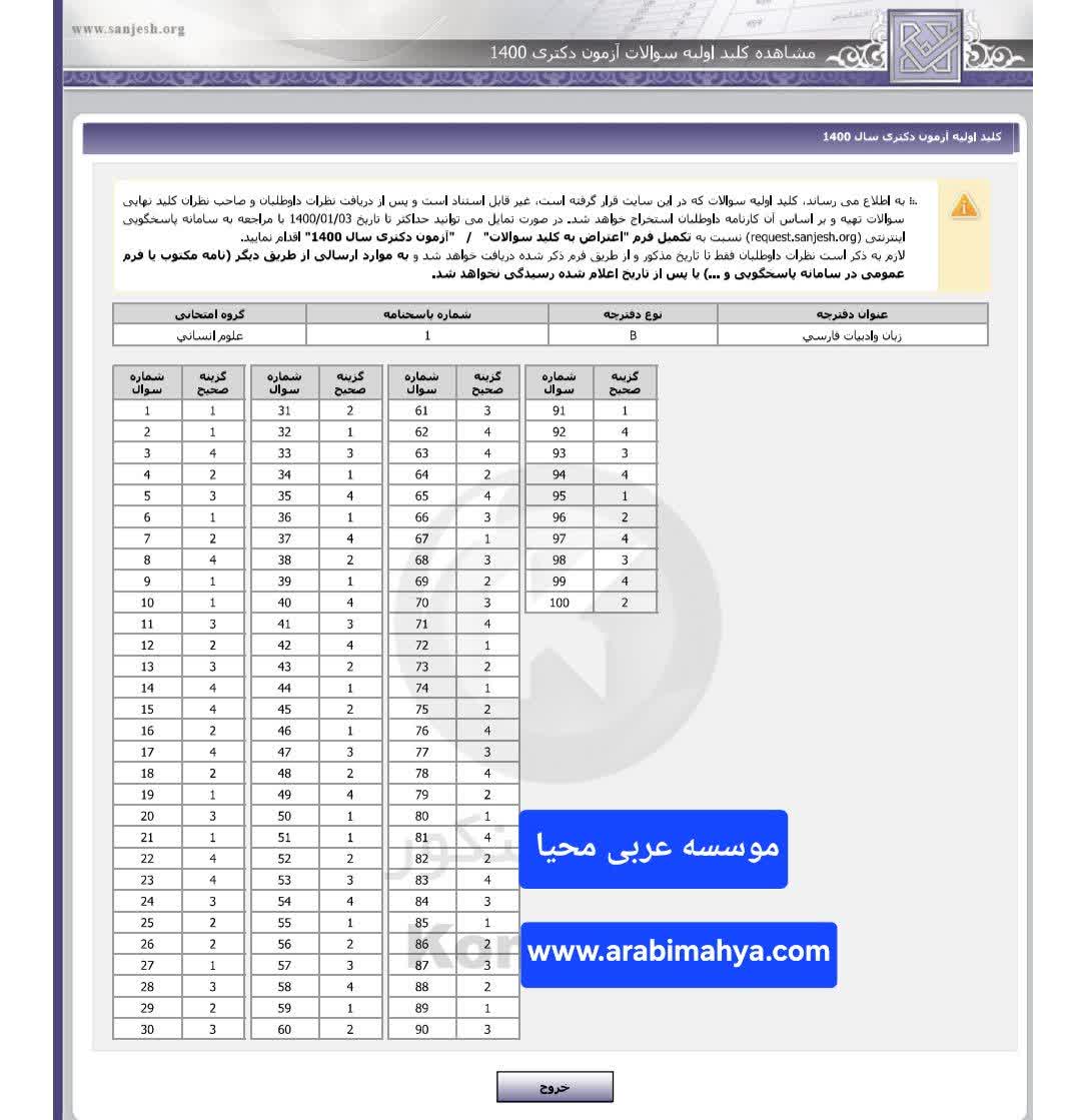 سوالات و کلید کنکور ارشد و دکتری ادبیات فارسی 1400 تا 1404