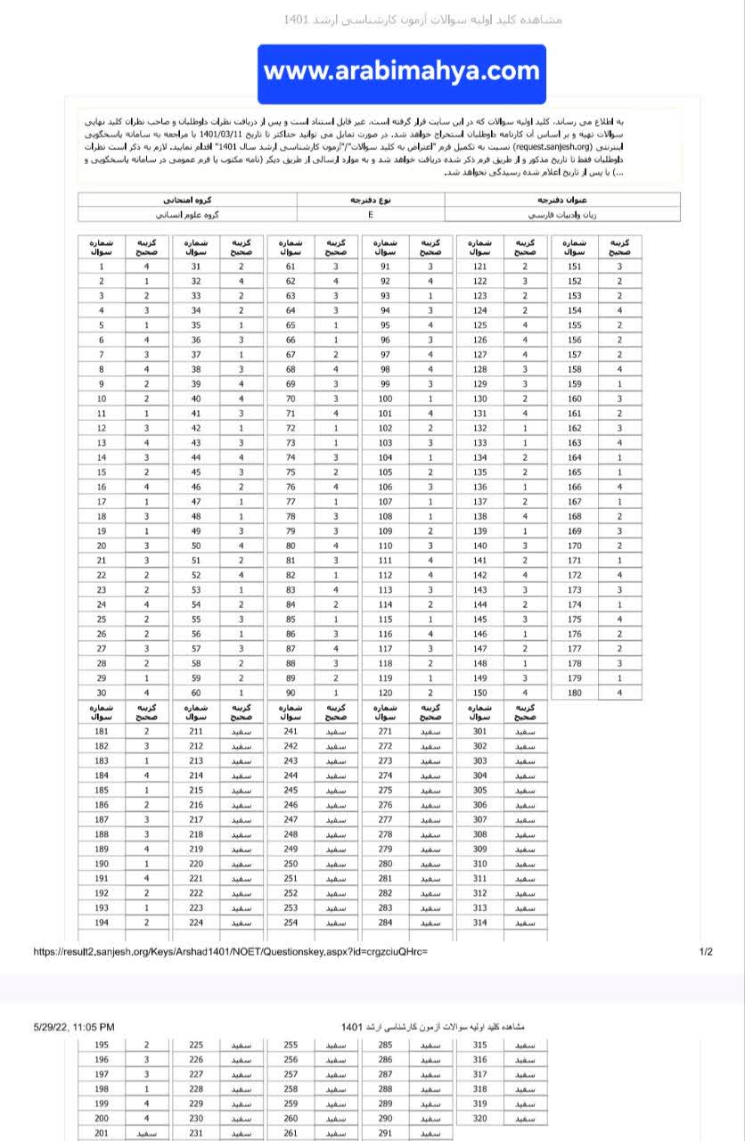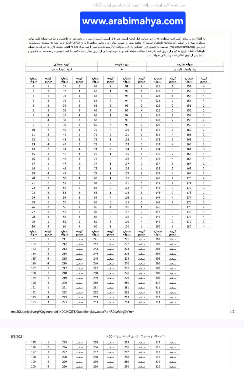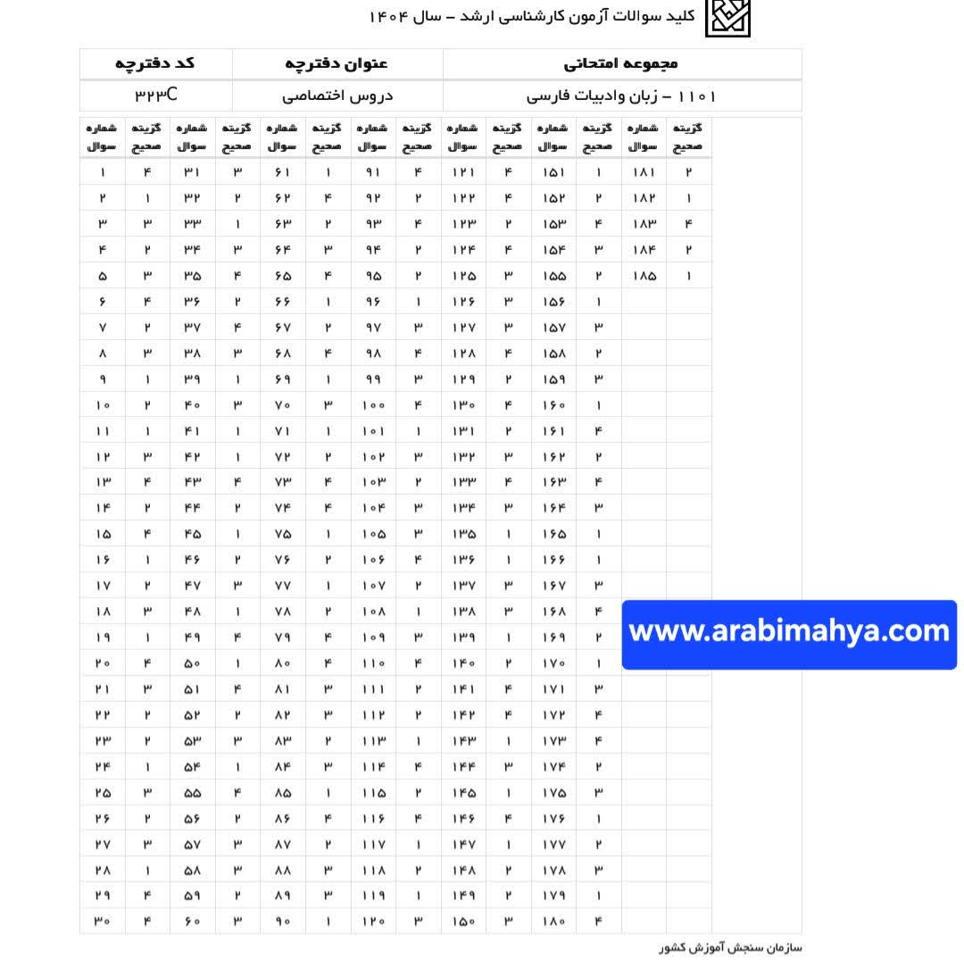 سوالات و کلید کنکور ارشد و دکتری ادبیات فارسی 1400 تا 1404