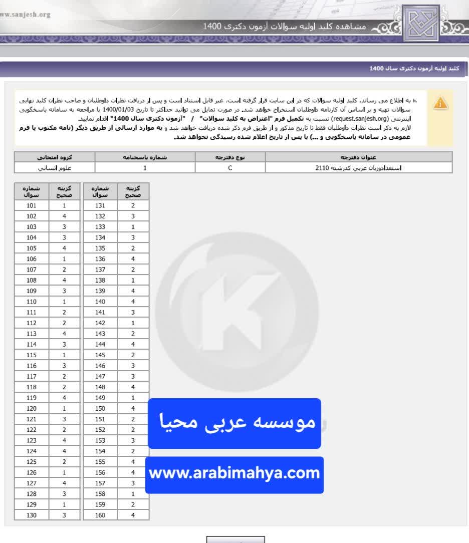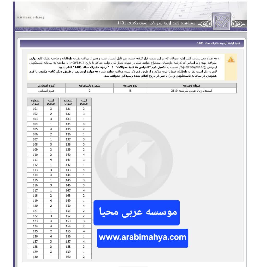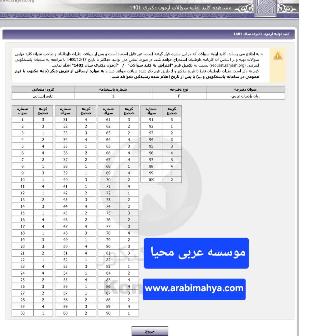 کلید دکتری ترجمه، زبان و ادبیات عربی 1401.jpg