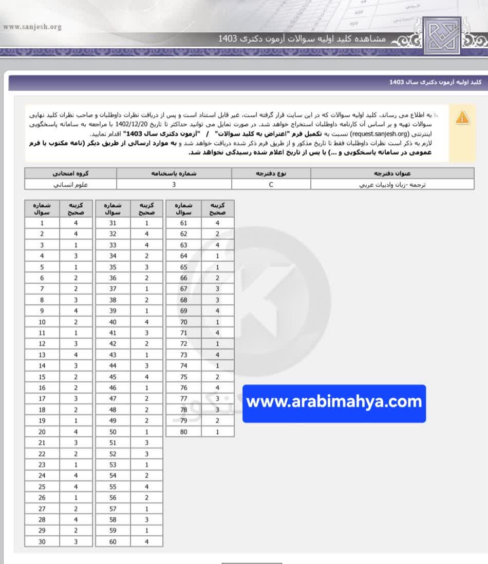 کلید کنکور دکتری ترجمه، زبان و ادبیات عربی 1403.jpg